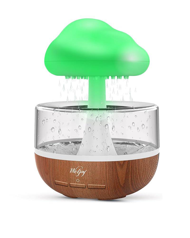 آبنما و چراغ خواب شبیه ساز باران طرح قارچ دارای قابلیت تغییر نور است و دارای ارتفاع 24 سانتی متر قاعده به ضلع 17 سانتی متر است. همراه خود یک کابل USB دارد که هر منبع دارای USB توانایی اتصال دارد